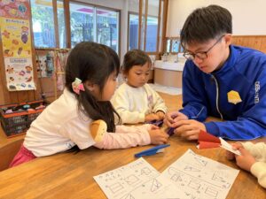 折り紙で紙飛行機を作って飛ばす遊びです✈️