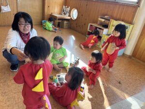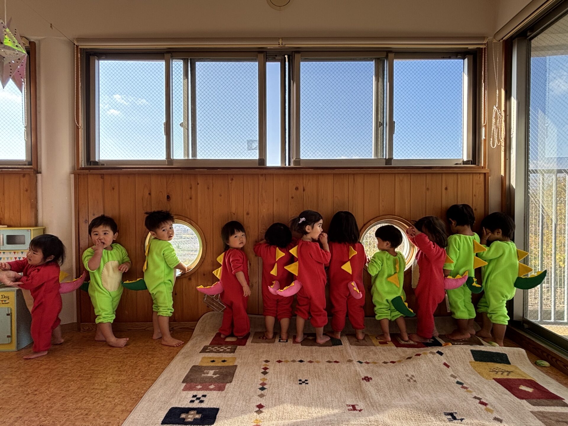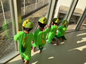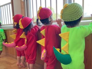 今日は写真撮影がありました✨ 衣装を着るとニコニコ笑顔のりす組さん、うさぎ組さん🦕 順番が来るまでは恐竜に変身して室内あそび!! この衣装を着るのも今日が最後だと思うと少し寂しいですね とっても可愛いみんなでした💕