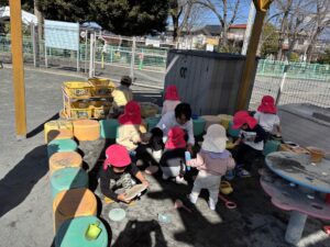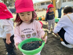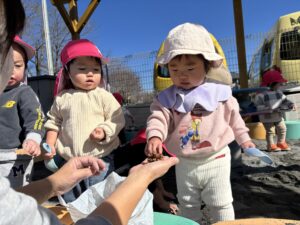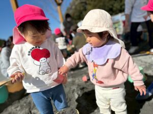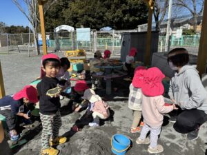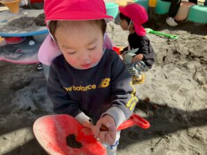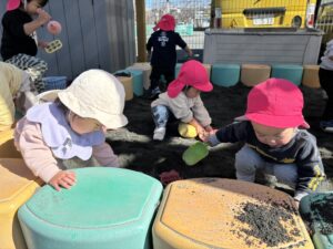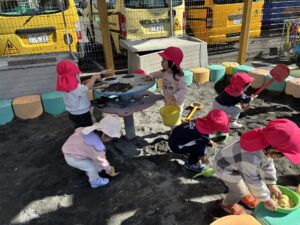 今日りす組さんとうさぎ組さんは一緒にお砂遊びを楽しみました✨