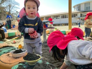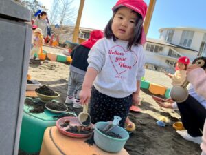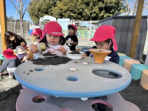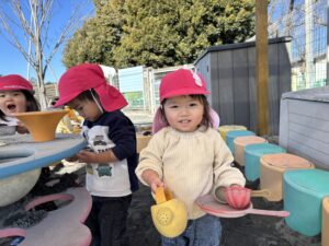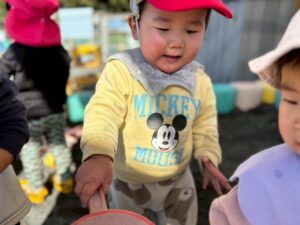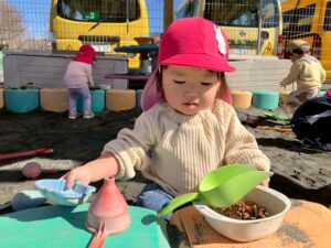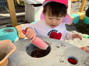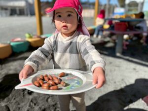いろいろな形の型抜きをしたり、ドングリや松ぼっくりと混ぜてお料理をしたりしてとっても楽しみました🩷