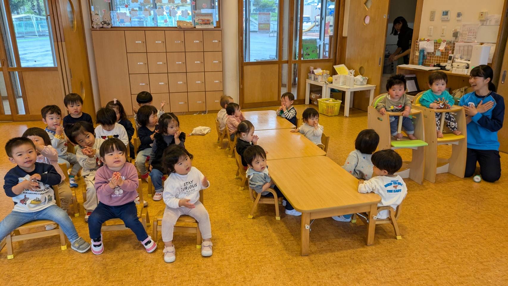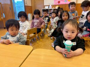 今日は乳児さんみんなで一緒に朝の会をしました🤗