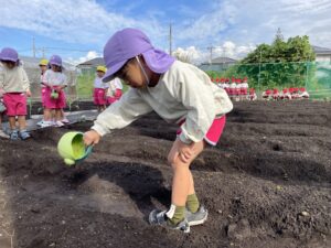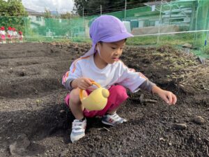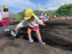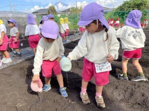 水やりをした後には、また、みんなで、おまじないをしたね。