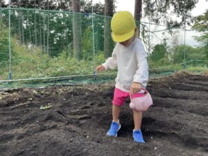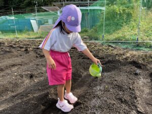 今日は、最初に、畑に水やりに行きました。