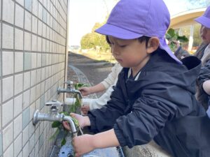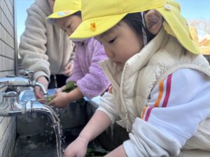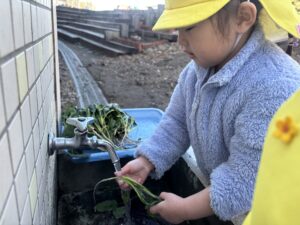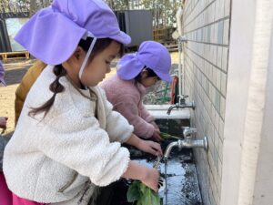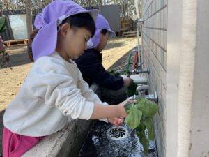 お水が冷たかったけど、畑の土をきれいに洗い落としたね。