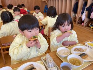 みんな、待ちきれず、できたてのピザをランチ前に食べたね!!