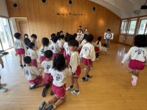 〇✕のところに子どもたちが移動しながらだったので