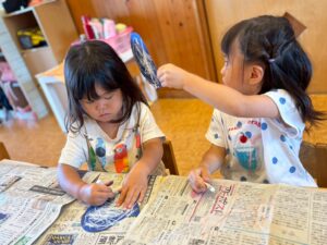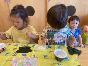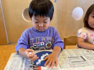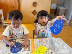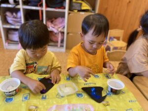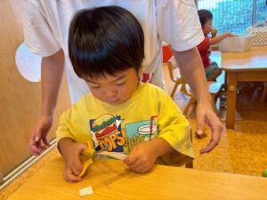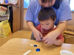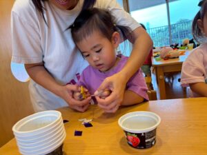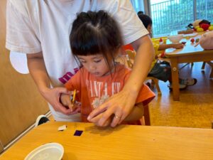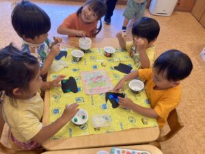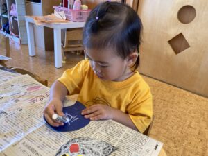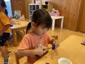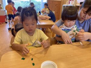 みんなが切った紙をお化けの帽子に飾って、壁面に飾る予定です✨