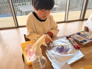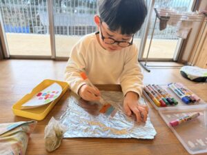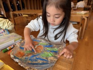 滲み絵はアルミホイルにマーカーで色を塗り