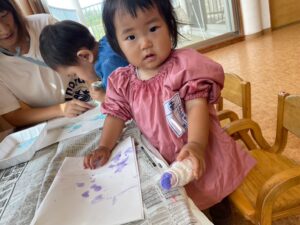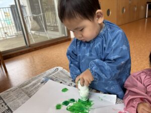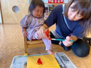 絵の具あそびもしたよ🎨タンポでポンポンスタンプしたり、足形手形をペッタンしたね🖐️👣絵の具の感触はどうだったかな?🤭