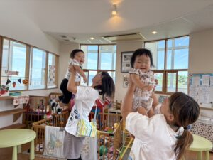 園内散歩もして、トントゥさんのお部屋で遊んだり、空の園庭からバザーの準備も覗いたね👀✨