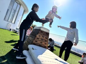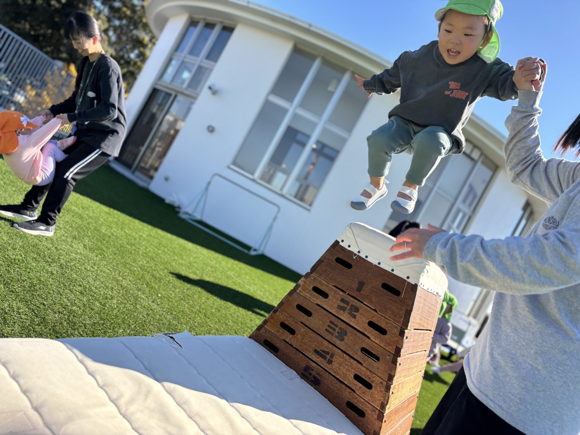 跳び箱ジャンプがとっても楽しかったようです。たくさんの可愛い笑顔に先生たちも嬉しくなったよ🩷☺️
