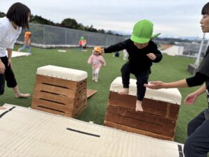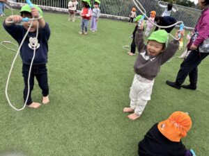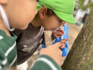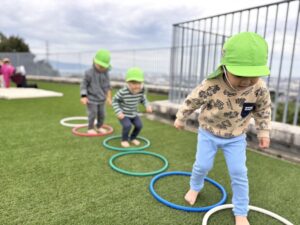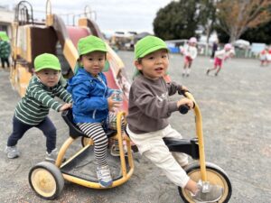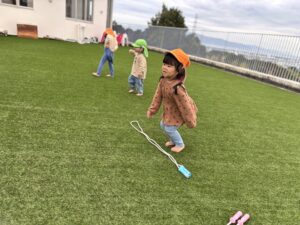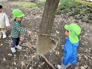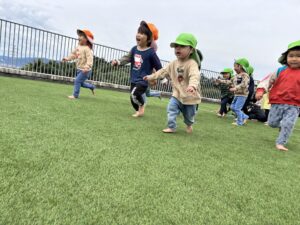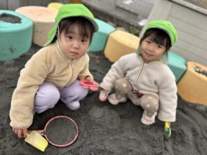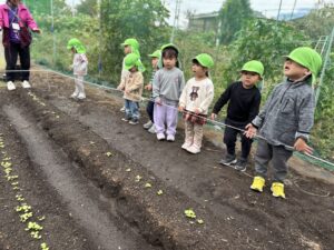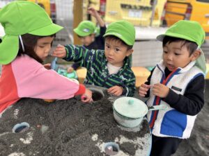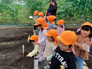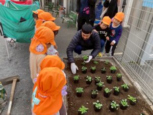 園長先生が土の園庭の花壇にお花を植えて下さいました。