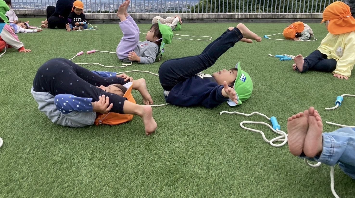 園長先生が土の園庭の花壇にお花を植えて下さいました。