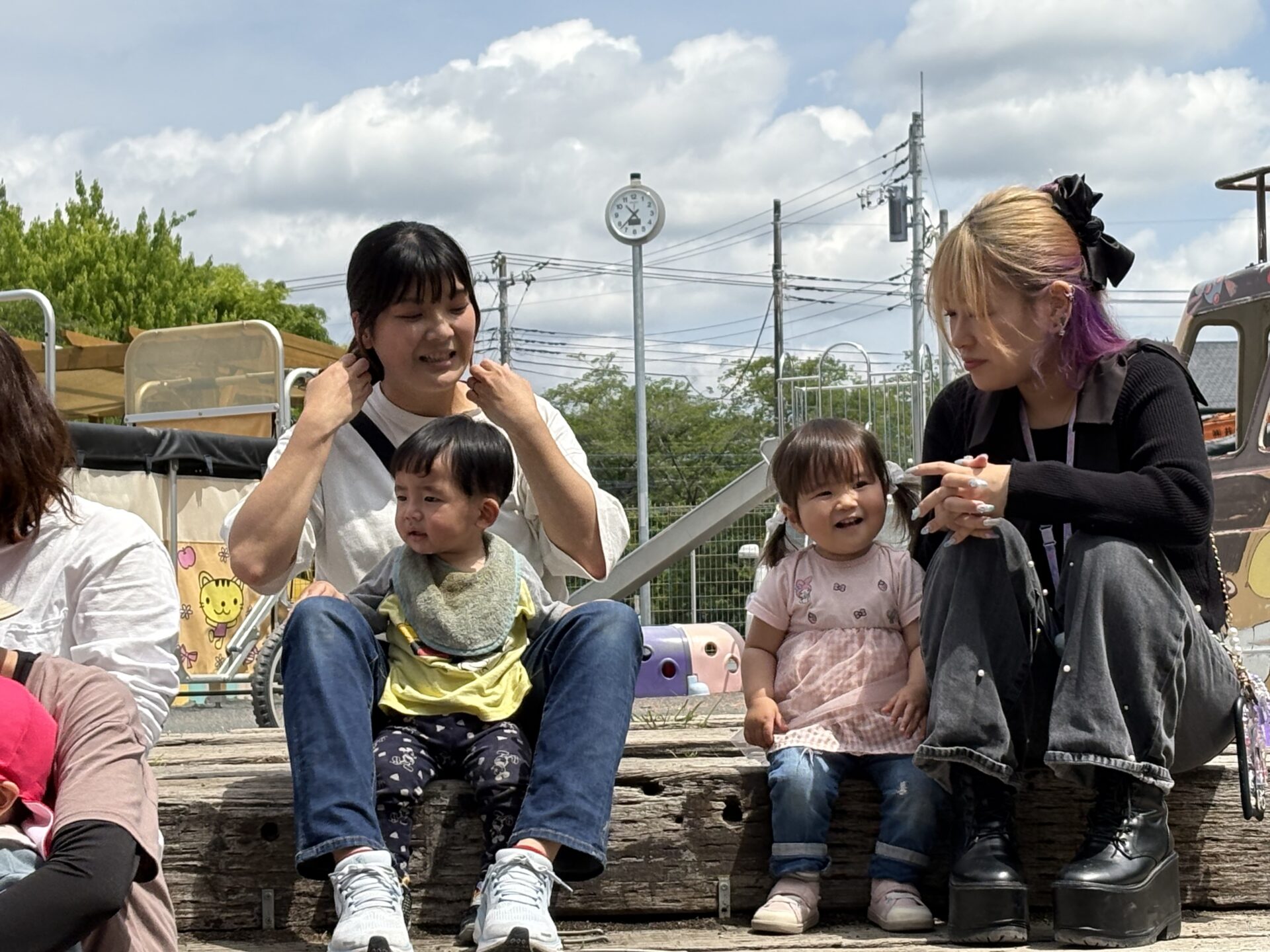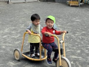 外遊びが気持ちいい季節になりましたね 今日のトントゥはお外遊びを楽しみました 人気の遊びは三輪車と滑り台 ひつじ組さん うさぎ組さん こあら組さんのお友達も一緒に楽しく遊びました 前にも一緒に遊んだ事があったので仲良しさん 今日も楽しかったね あんぱんまんの手遊びや絵本も楽しかったね 木曜日4/30は園舎南側のヤギさん羊さんのところに遊びにいきます 葉っぱも持って行くよ! ヤギさんたち食べてくれるかな?