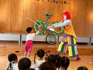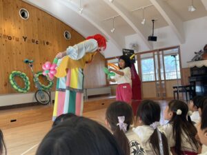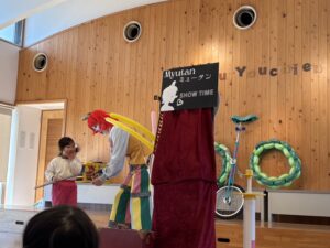 バルーンアートやマジック、皿回しやパントマイム、ジャグリングなど多彩な演目があり子ども達も夢中になりました🩷☺️