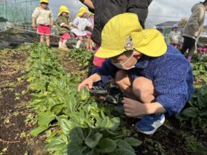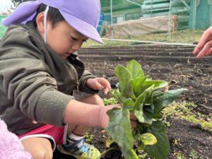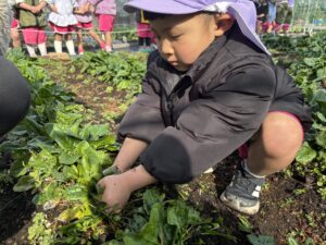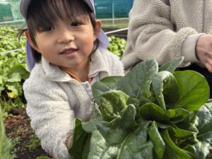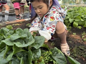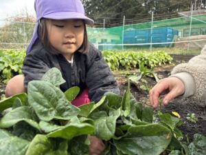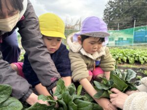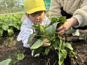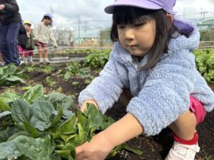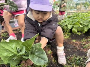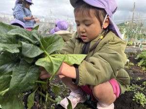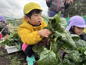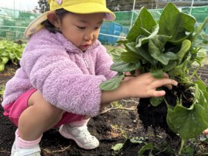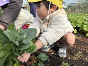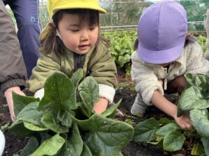 今日は年少で2回目のほうれん草の収穫をしました♪前回よりおっきくなったほうれん草は、抜くのが大変だったね😥