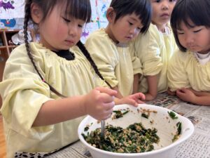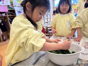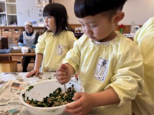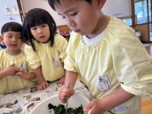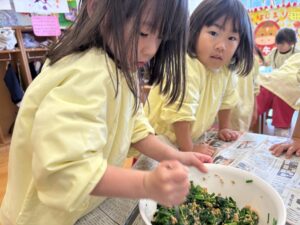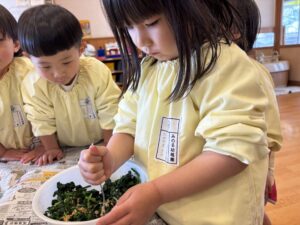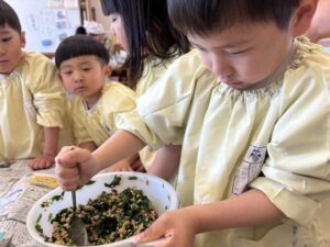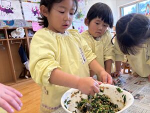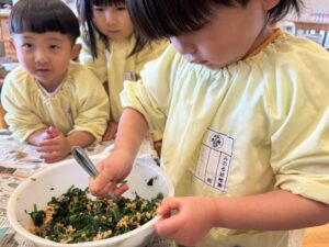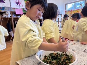 まぜまぜと海苔にクルクルとほうれん草を巻いて楽しかったね♪ランチでたくさん食べれてよかったね^_^