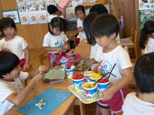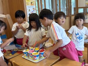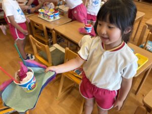 祖父母参観でかき氷やさん🍧をやってから、お部屋でもかき氷やさんをオープンして遊んでいます😋