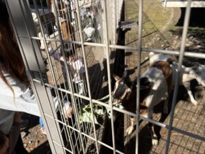 小屋の中にいるチャチャとラック、ふわちゃんユキちゃんに会いに行ったね