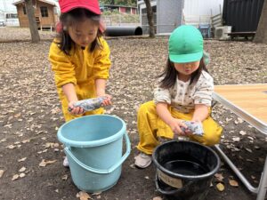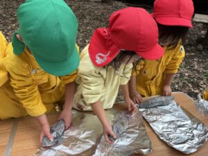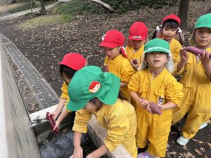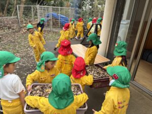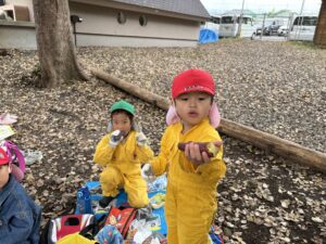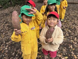 今日はばら組さんとうめ組さんで 焼き芋会をしました🍠 さつまいもを丁寧に洗って 新聞とアルミホイルで包んだね! さつまいもがしっかりと隠れるように 真剣にまきまきしていました🤭💖 その後は釜戸に移動して たーーーーくさんの落ち葉を さつまいもに被せたね! 「こんなに落ち葉かけるの?!」と ビックリしていました👀‼️ 焼き芋が出来るまでお弁当を食べて 待ちました🍴 焼き芋が完成してすぐに食べたので あったかくておいしかったね😋🎶