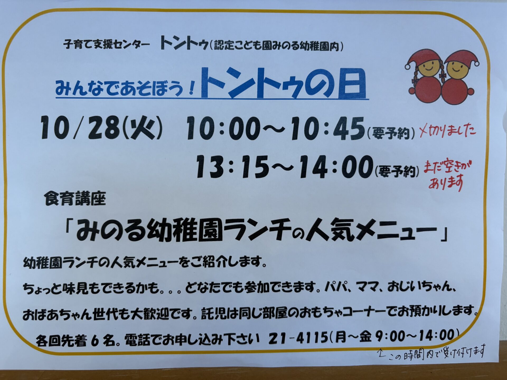 10/24(金)14:00で締め切ります