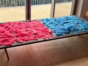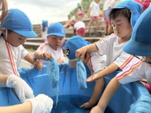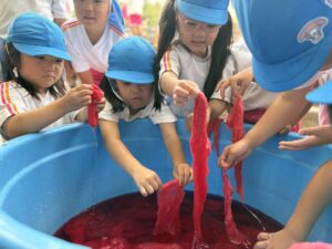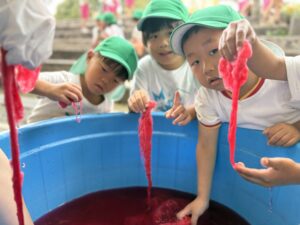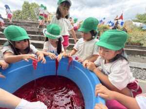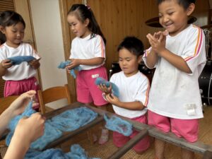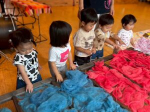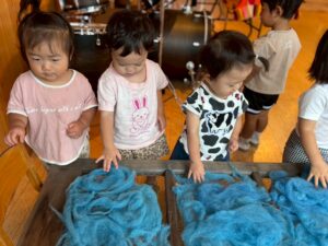 今日はりす🐿うさぎ🐰ゆり💙うめ💚ぐみで羊の毛染めをおこないました!