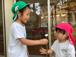 りす、うさぎぐみのお友だちにマシュマロを焼いて渡したり、一緒に食べれて嬉しかったね😘