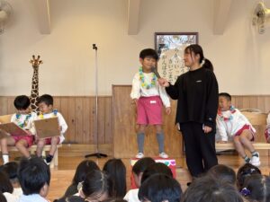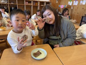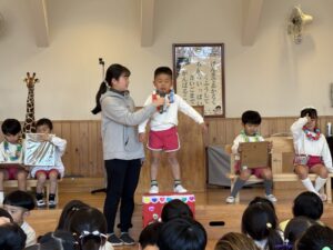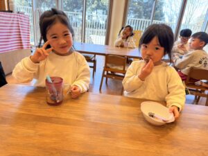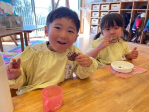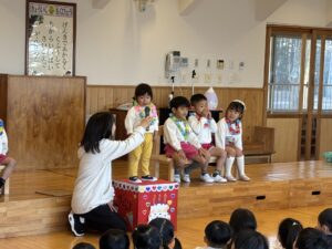 今日は2月の誕生会がありました✨ 2月生まれのお友だちが作ったのは、いちごいっぱいのケーキ🍓🎂 美味しそうだったね✨ みんなの前で恥ずかしくなっちゃったお友だちもいたけれど上手にインタビューに答えていました!! お楽しみはカードシアター! パンがいっぱい出来てみんな大喜び✨ お部屋に戻ってからはチョコマシュマロバーを食べました🩷 お誕生日おめでとう🎂🎉