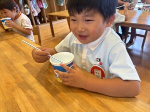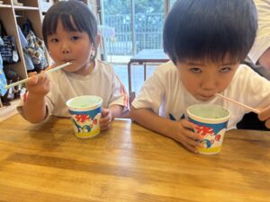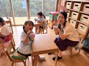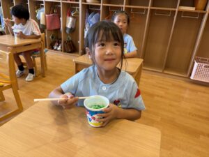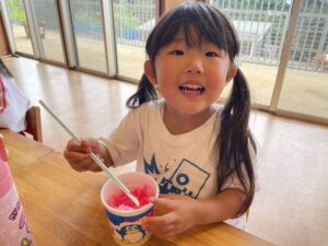 今日は8月生まれのお友達の誕生会でした🎂 ちょっぴり緊張した子もいたけれど、先生と一緒に台に立てて立派だったね👏 今日のお楽しみはかき氷🍧 美味しくてペロリと食べちゃったね😋 8月生まれのお友達、お誕生日おめでとう🎊