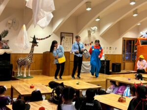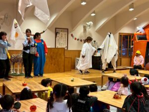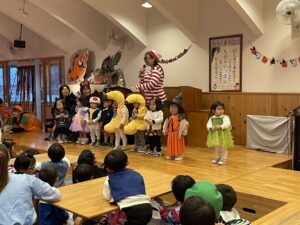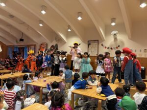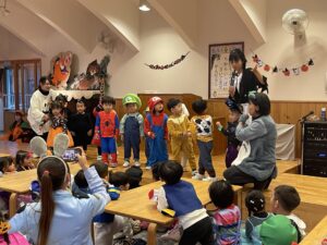 今日は子どもたちが楽しみにしていた ハロウィンパーティー🎃🎃 雨になってしまいましたが みんなでホールで楽しんでいます🧡💜 みんな素敵な仮装をしていたので まずはファッションショー!!🤗 クラスごとどんな仮装をしてきたか紹介しました!! 同じ仮装のお友だちもいて みんなとっても似合っていたね🙌🏻🙌🏻 その後は先生たちによるハロウィンの劇🎃 ハロウィンってどんな日か みんなで知ることができました👐🏻 ご飯タイムも楽しみたいと思います🤍🤍