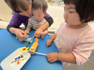 鯉のぼり作りでは、シールを上手に剥がして貼りました!