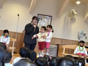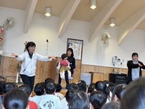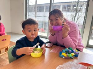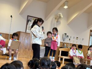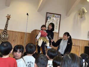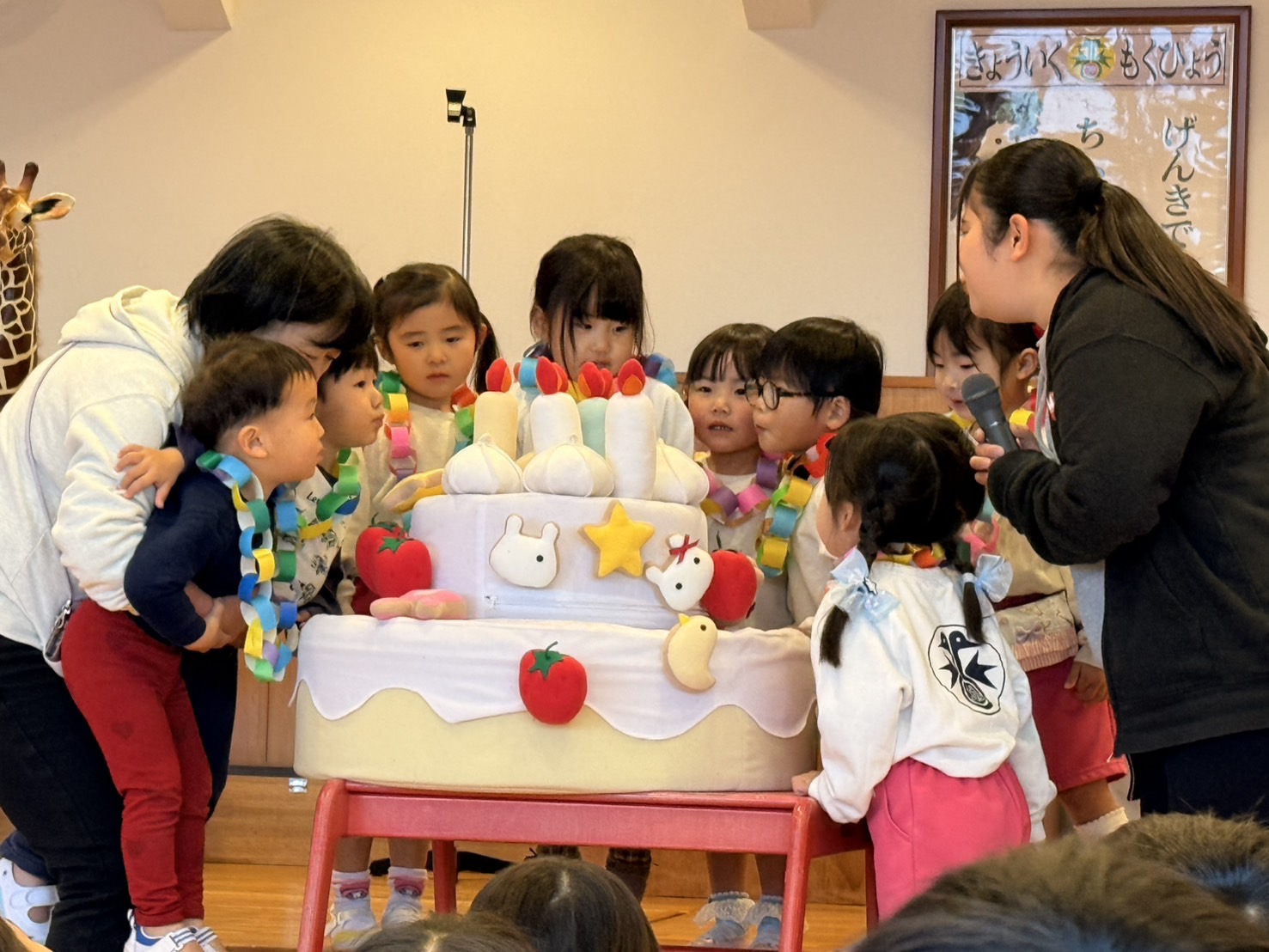 今日は 1月生まれのお友達のお誕生会でした☺️🎂 みんなにお祝いしてもらって 嬉しかったね🩷 お楽しみは、、 腹話術🎶 じゅんくんが来てくれました!! みんなでおにのパンツ👹を歌ったり、 楽しかったね🎵 じゅんくんまた来てね☺️ スコップケーキも美味しかったね🩷 1月生まれのお友達、 お誕生日おめでとう🎁🎉🎂