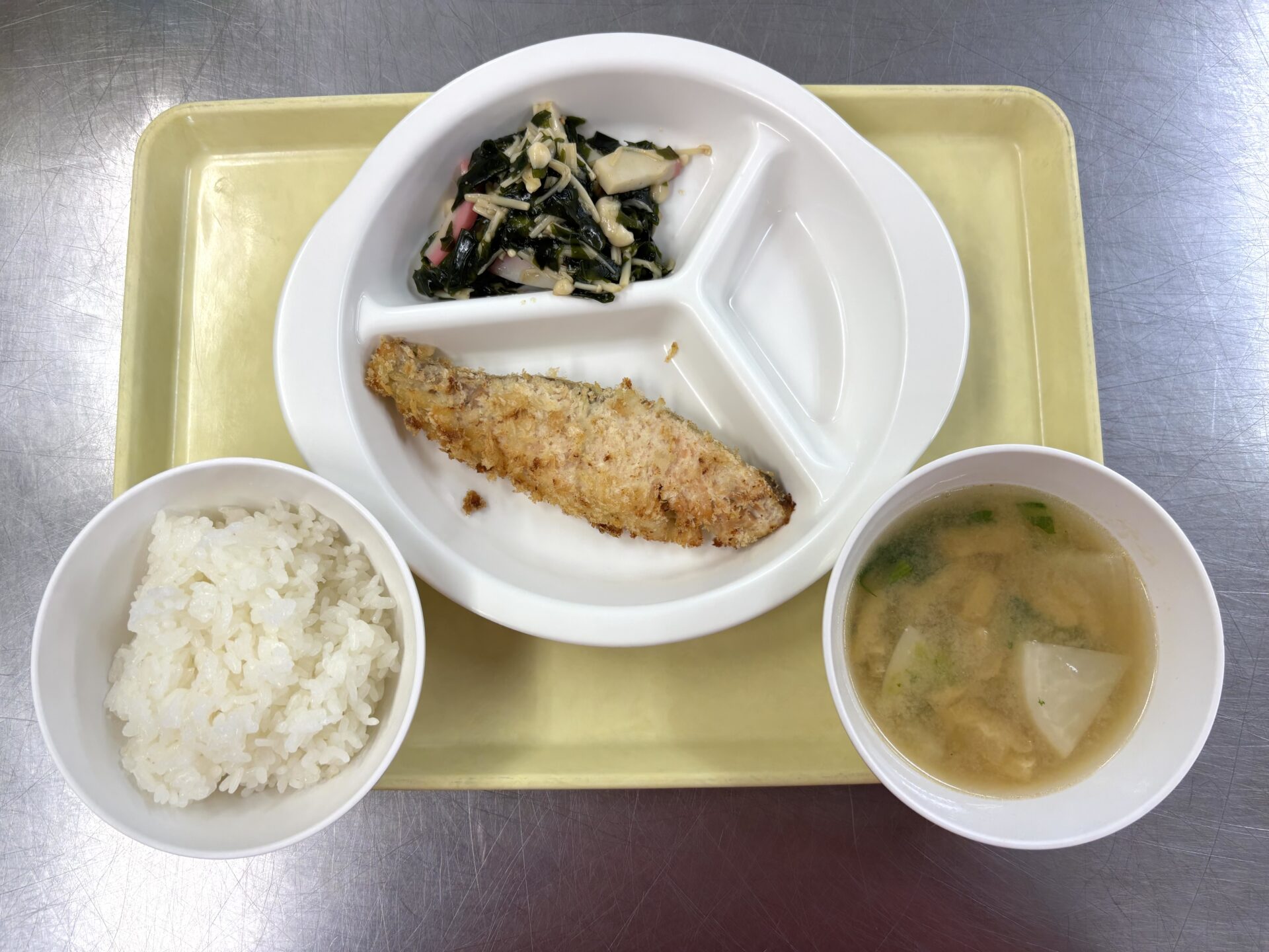 ・わかめとえのきの酢の物 ・みそ汁(かぶ、油揚げ)