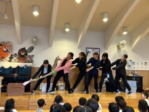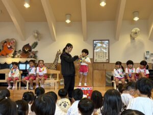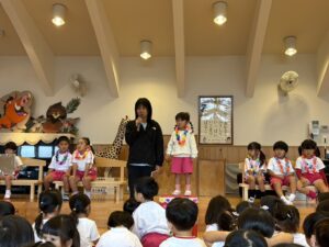 今日は10月生まれの誕生会でした🎂🎉 お友だちにお祝いしてもらえて嬉しかったね☺️ お誕生日の子は前にでて、少し緊張している様子もありましたが、お名前など上手に言えました😊🙌🏻 先生たちのお楽しみは、「おいもほり」🍠 うんとこしょ、どっこいしょの掛け声で大きなさつまいもがとれました🍠 そして、おやつはモンブラン🌰 とってもおいしかったね🤭 お誕生日おめでとう🥳🎀
