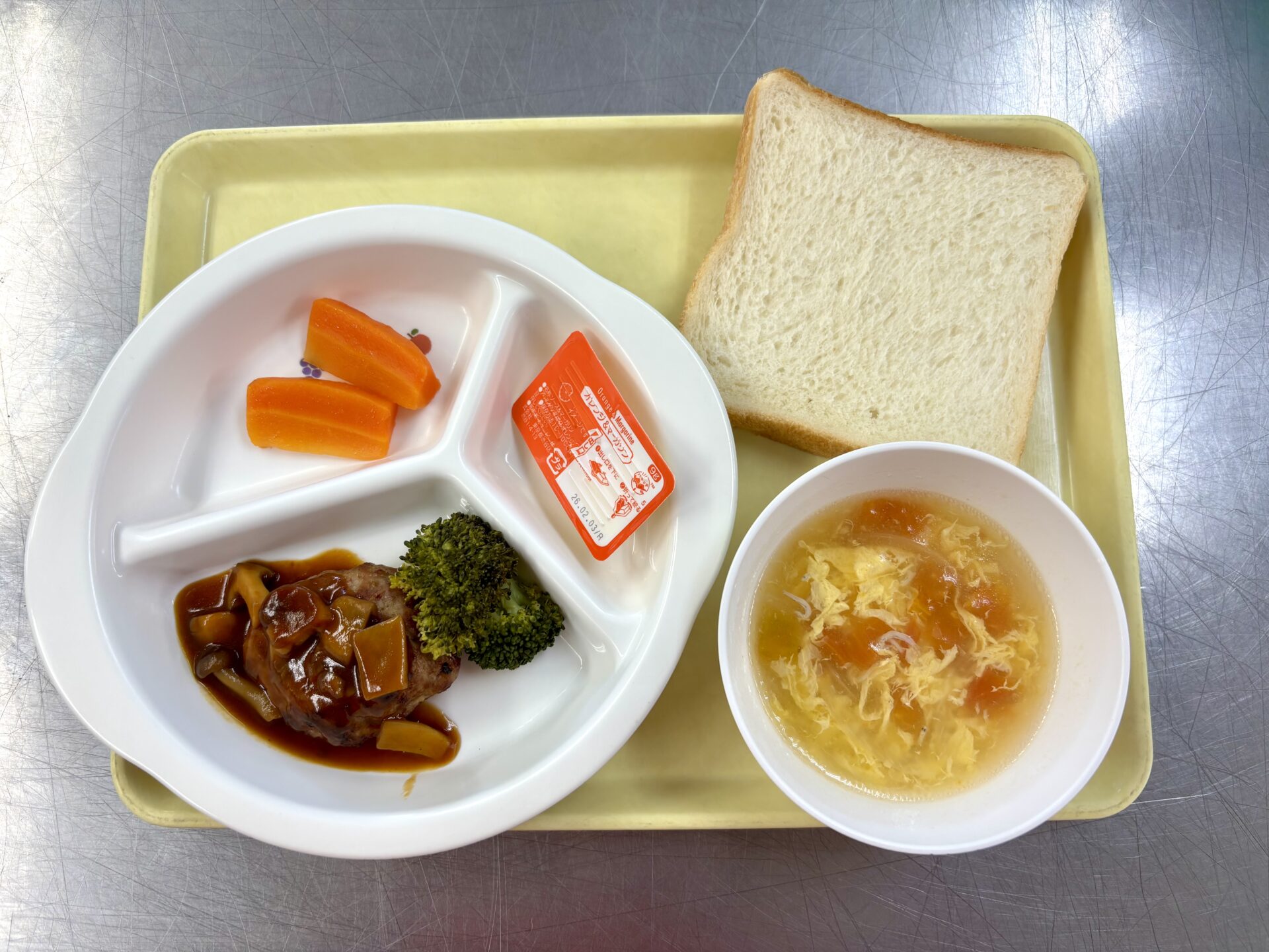 ・食パン(オレンジジャム) ・ハンバーグきのこソース