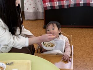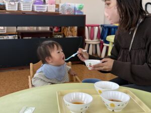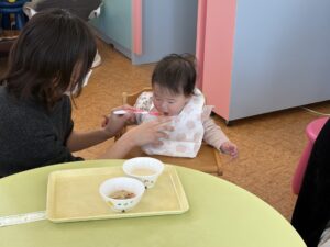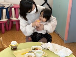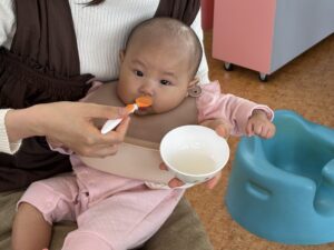 初めてきたお部屋だったけど泣かずに離乳食完食!
