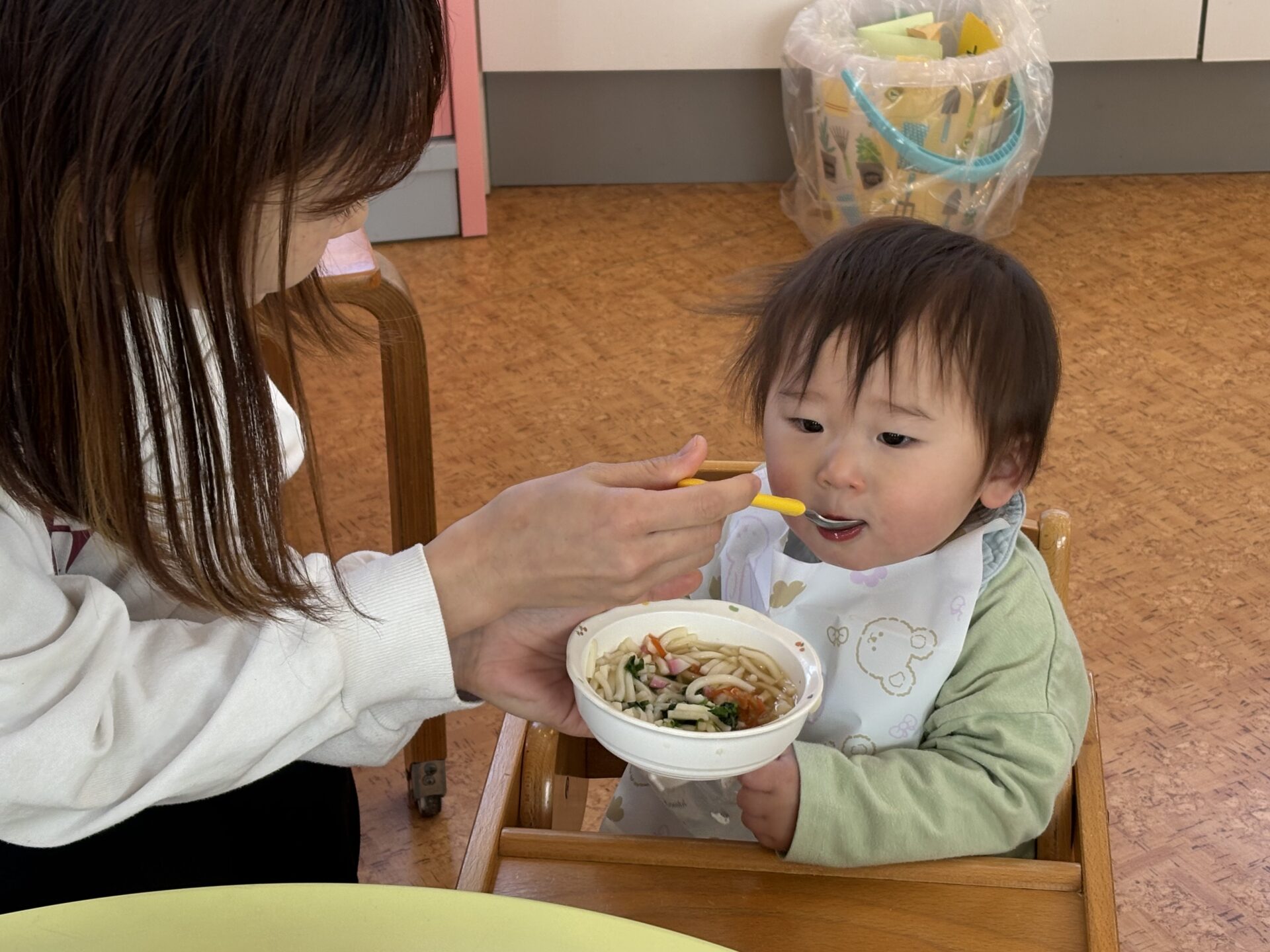 初めてきたお部屋だったけど泣かずに離乳食完食!