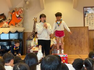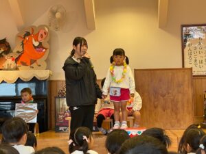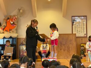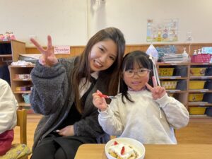今日は今年度最後の誕生会でした♡ 3月のお誕生日の子たちは今日をとても楽しみにしていました🤭 みんなの前に立つと少し照れてしまう子もいましたが、お友だちにお祝いしてもらえてとても嬉しかったね😊🫶🏻 そして、先生たちの最後の出し物は、ダンス💃 クリスマスパーティーでも踊っていた、「カリスマックス」を先生たちが踊りました😌 おやつは、いちごのトライフル🍓 美味しかったね!! 今年度も誕生会に来ていただきありがとうございました🥰
