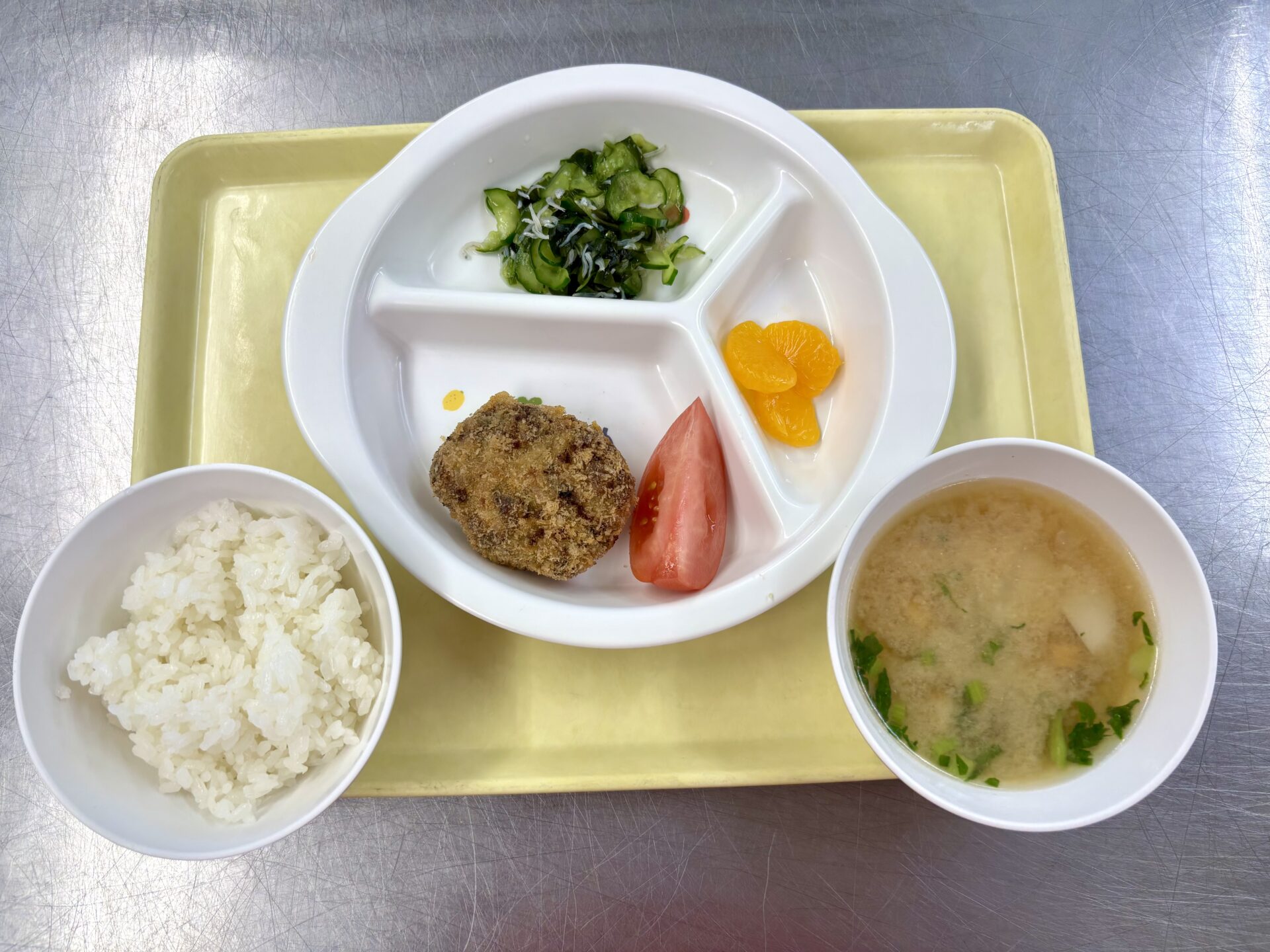 ・ごはん ・小松菜入りメンチカツ(トマト)