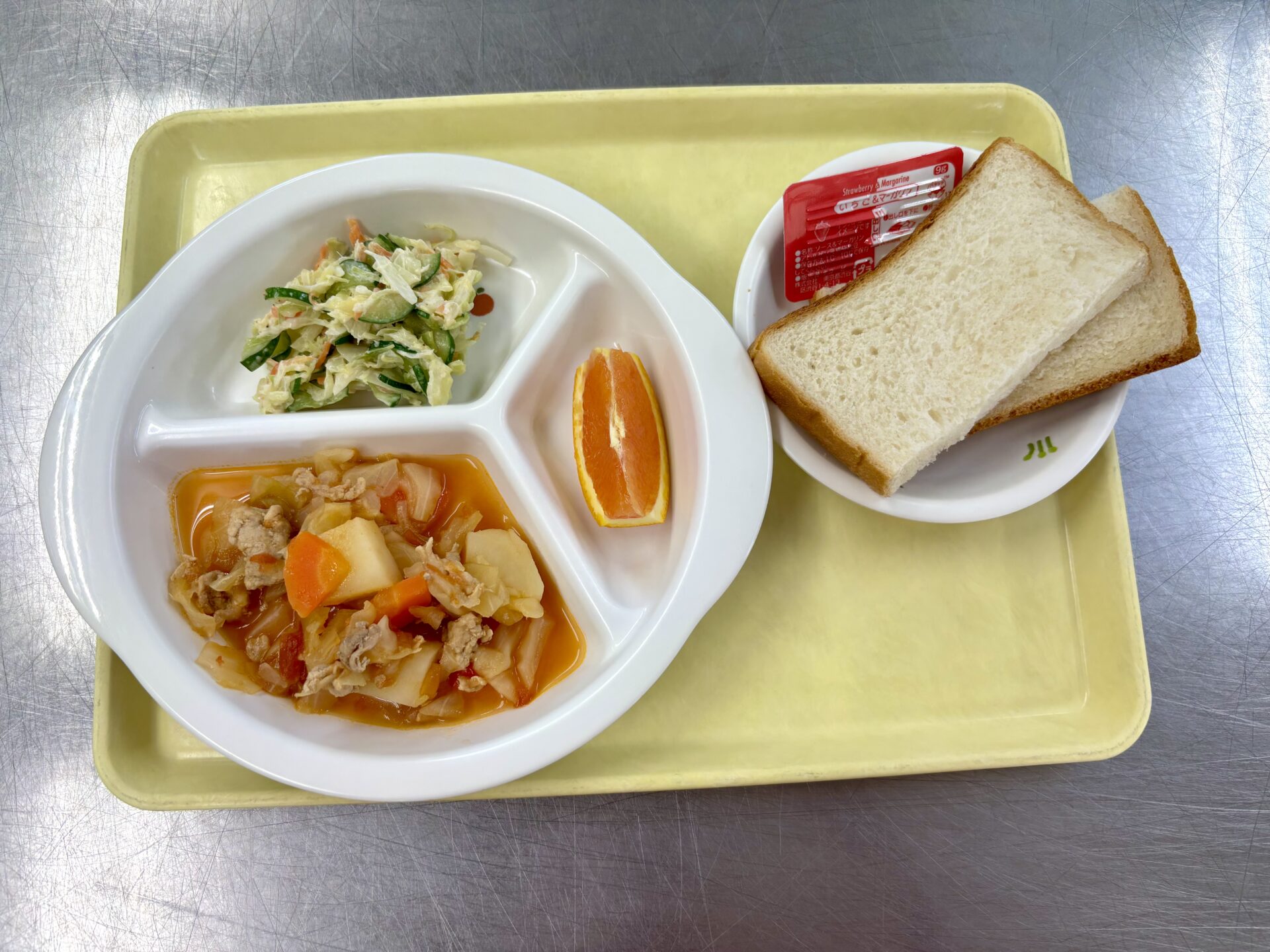 ・食パン(いちごジャム)  ・豚肉と野菜のトマト煮